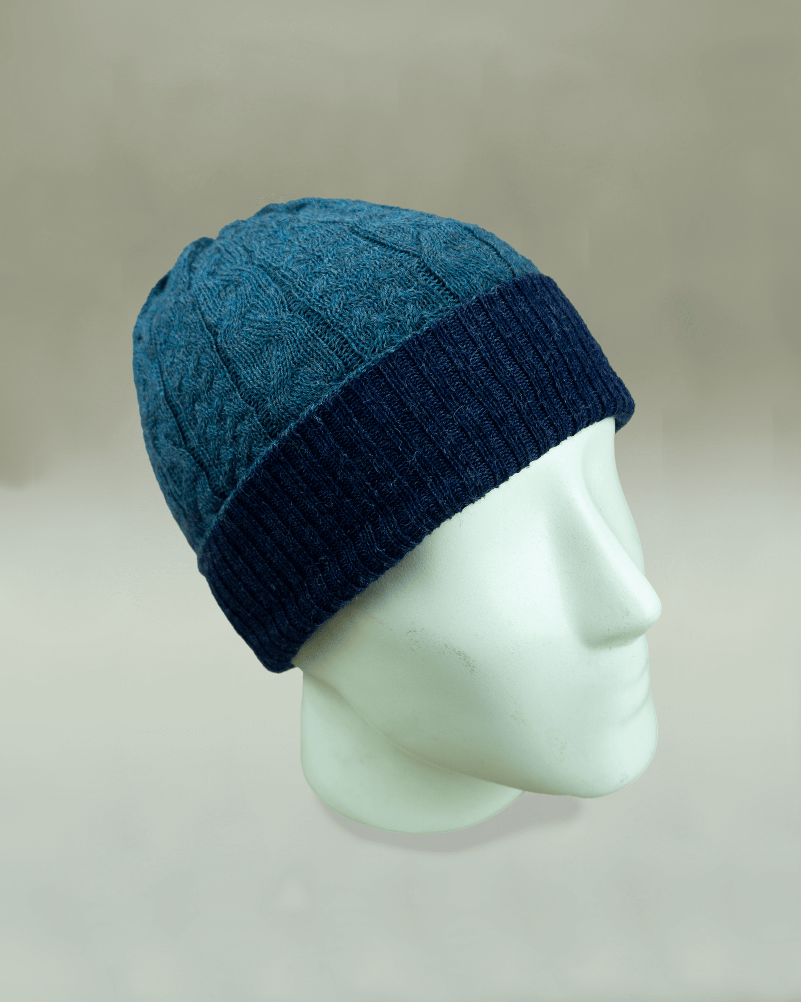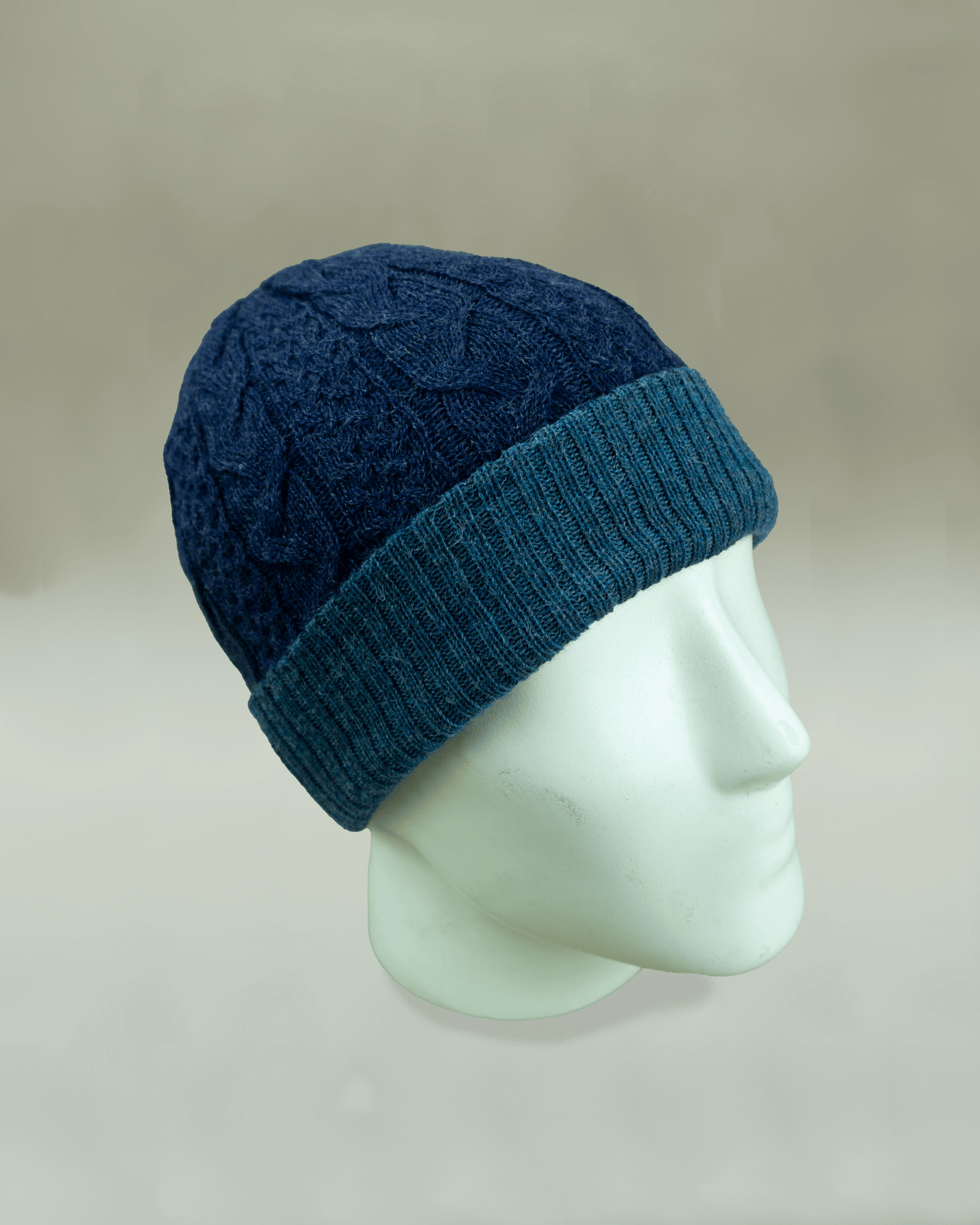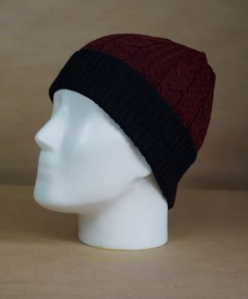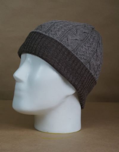 These are 100% baby alpaca knitted hats and they are also reversible. The braids go all around the hat and you may turn the edge to make it shorter.