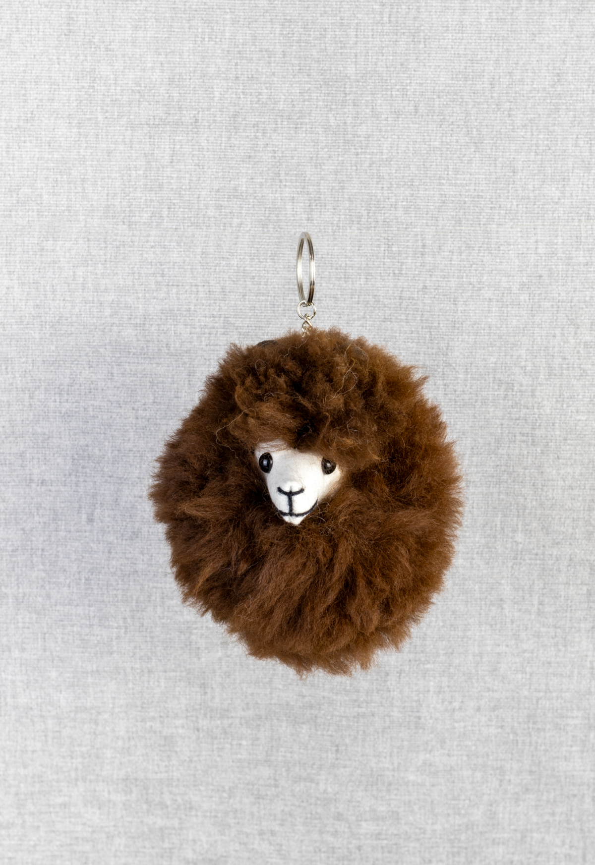 Miniature alpaca keychain made with alpaca fur skin and the size is 4″. It’s a cute gift.